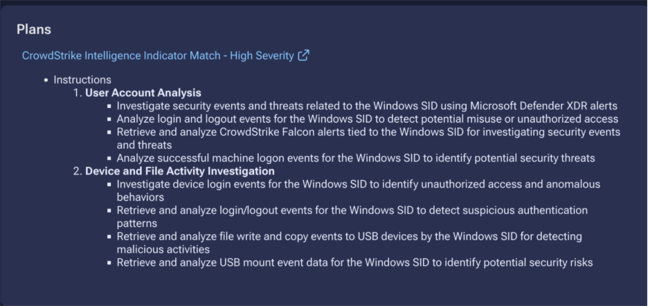 As your organization’s security posture evolves; new systems deployed, new threat intelligence incorporated, new detection logic implemented, the investigation plans can evolve in parallel. The customization capability means your autonomous investigations grow more sophisticated over time, adapting to your changing environment rather than remaining frozen at whatever generic baseline the vendor shipped.