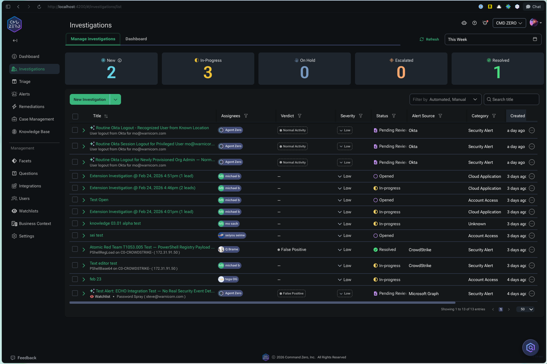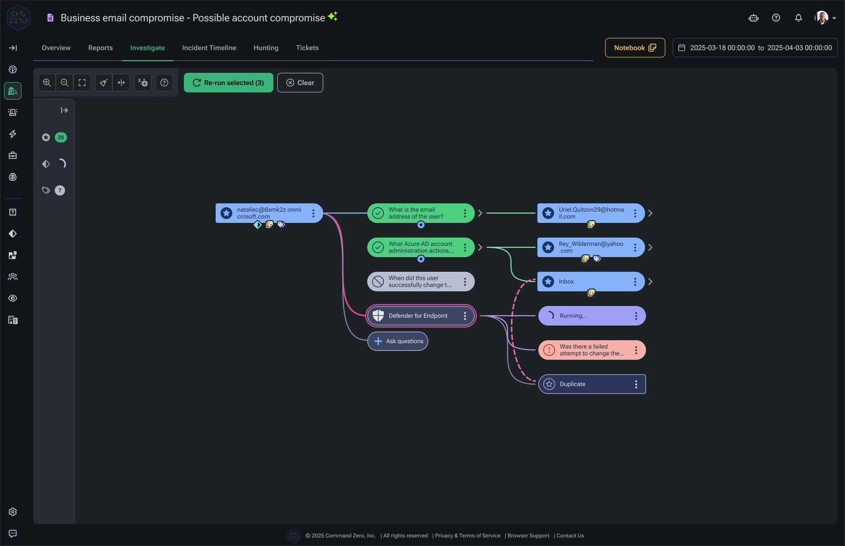 Automated Investigations. Stop routing alerts — start closing them. Command Zero autonomously investigates every Tier-1 case with the structured reasoning of a senior analyst. It delivers a complete, auditable verdict before a human touches the alert.